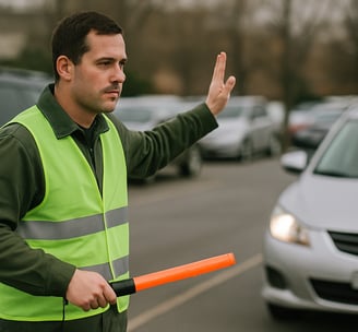 Servindo com amor e ajudando na alocação dos carros no estacionamento.